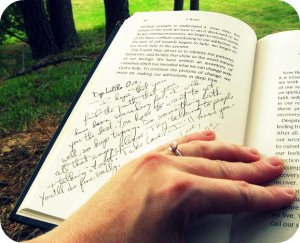 of my ‘goodbye’ book from the hospital. This is the entry that my beloved Rose wrote to me. . . I read and re-read it often, just touching the book makes me feel close to the beginning…instead of the end.